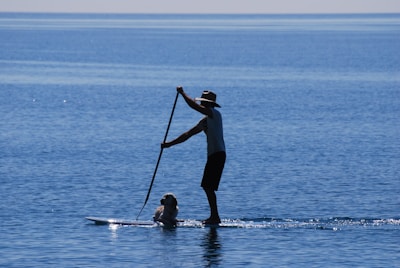 person in white and blue sneakers standing on brown dirt ground with green trees